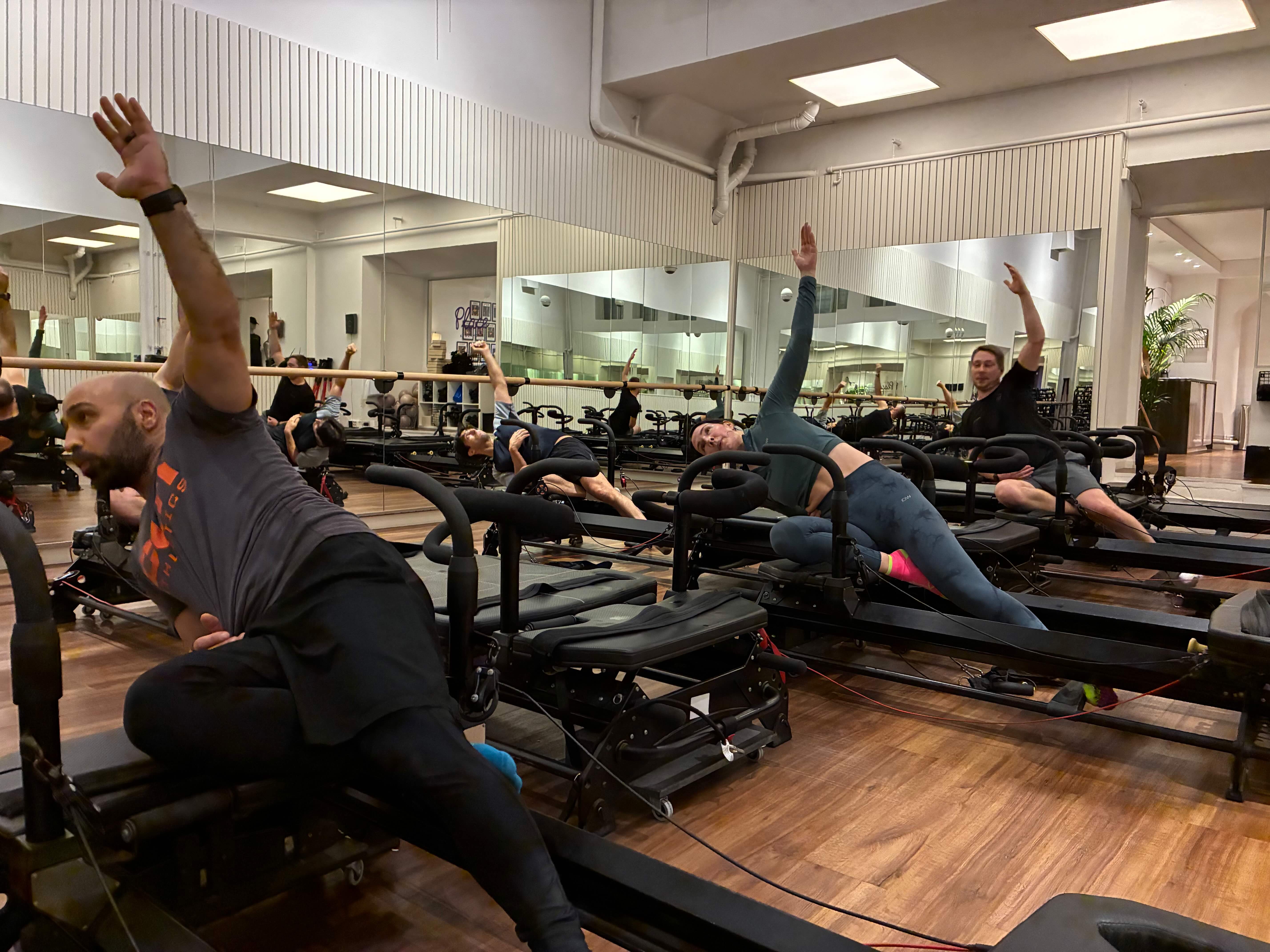This was MEGA mega fun! I got four guys to try Megaformer Pilates, probably not something they would have tested on their own. We dared to try, experimented our way through it, and WOW was it fun! I don’t think I’ve ever laughed that much during a workout before.
